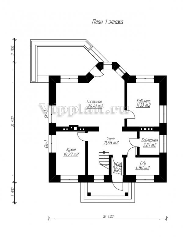 | Размеры дома: | 10.62м×10.42м |