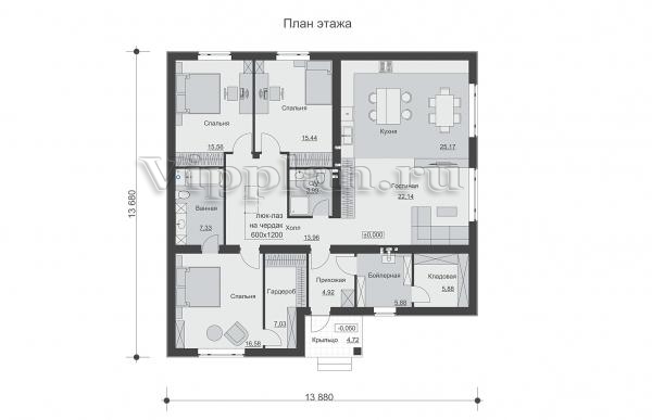 | Размеры дома: | 13.68м×13.88м |